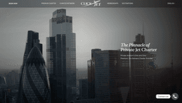 ClickJet organise des vols privés et des charters pour des dirigeants et des particuliers fortunés — coordination de la porte à l'aéronef, transport terrestre, restauration et gestion complète du voyage. Leur présence web était générique et ne communiquait pas l'expérience premium qui définit le service.